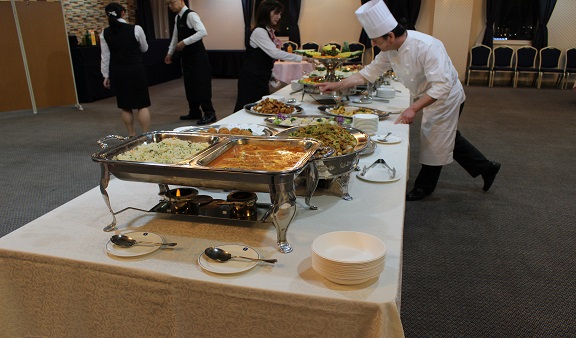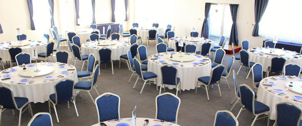 パーテーションで仕切れますので、着席の場合、10名様から最大140名様までご利用人数に合わせた対応が可能です。立食パーティーにも最適。立食パーティーでしたら200名様まで収容が可能です。